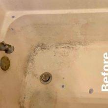 This product works great! It cleaned my super old tub that has lost most of its finish. This was even cleaned just using Mr. Clean. Not even specialized soap scum/mildew cleaner. Although I'd like to have protective goggles included - not everyone has them at home.