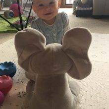 “Daisy is 6 months old and she always wants to play peek-a-boo. On a beautiful day, I found this cute elephant toy and I decided to give it to Daisy. Awesome! She was really excited, I am sure every child in the world is attracted to this elephant.”