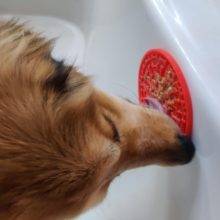 Now, this is as far as I have gotten, but I really feel like this is a serious victory. I will continue slowly working up to a full bath, but I think it will continue to go well as long as I don’t push him too fast. I’ll update if anything changes, but these lick mats work!