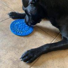 I just finished cutting and dremeling toenails on my three dogs with their total cooperation, thanks to this product. I just put squirt cheese in between the nubs of the slow treater, laid it on the grooming table, and the dogs were happily licking away while I worked on their feet. No pulling away, no second person to hold the dog, just me, some cheese, and the slow treater. I’m a fan!!!